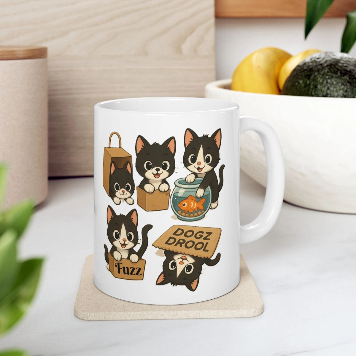 This Kittens Rule and Dogz Drool Coffee & Cat Lover's Mug is ceramic and is the perfect way to brighten your day with every sip. Featuring vibrant colors and whimsical designs, it brings a sense of playfulness to your morning coffee or evening tea. Ideal for cat lovers, this mug can seamlessly fit into a cozy home or be a charming addition to your office desk. Whether you're enjoying a quiet moment or sharing laughs with friends, it adds a touch of joy to any occasion. Great for birthdays, holidays, or simply as a treat for yourself, this mug is a stylish and functional companion for all your favorite beverages.
